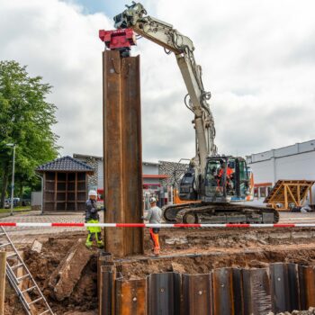 Herstellung des Berliner Verbaus für das Basberg-Quartier mit dem leistungsstarken Sennebogen 825.