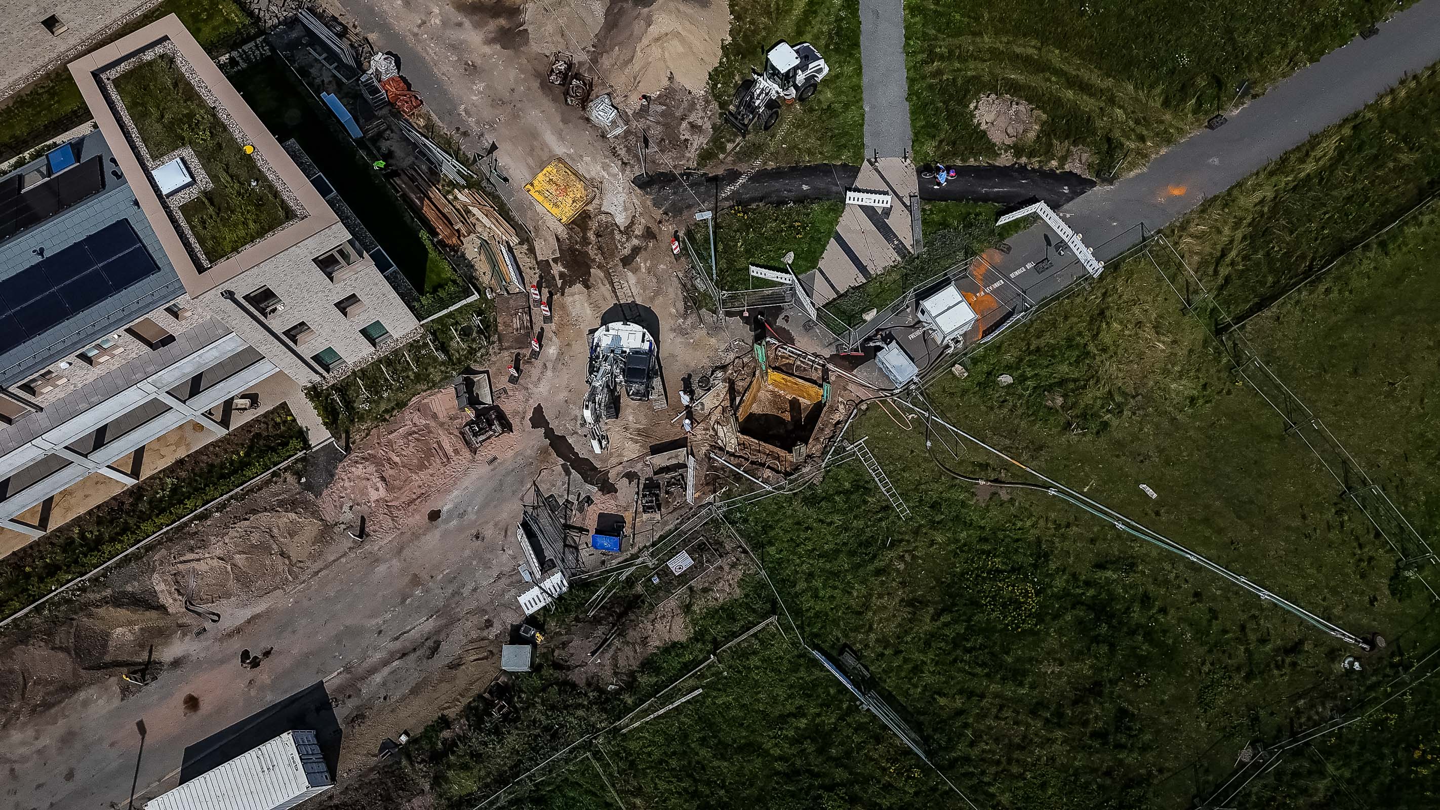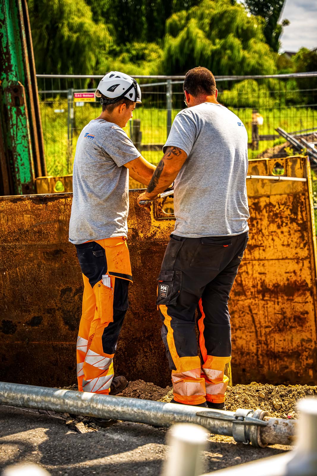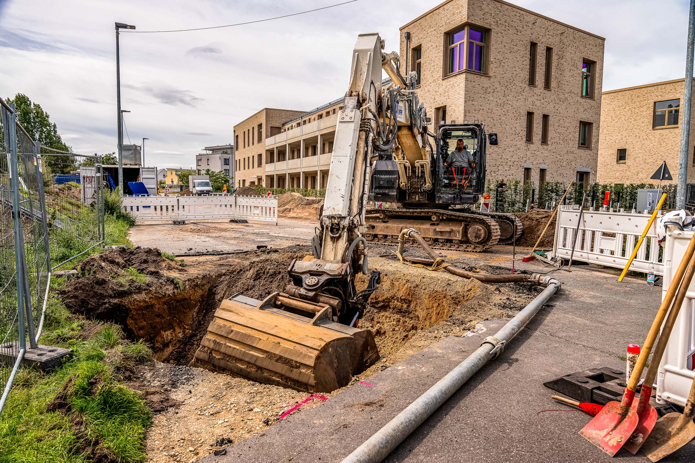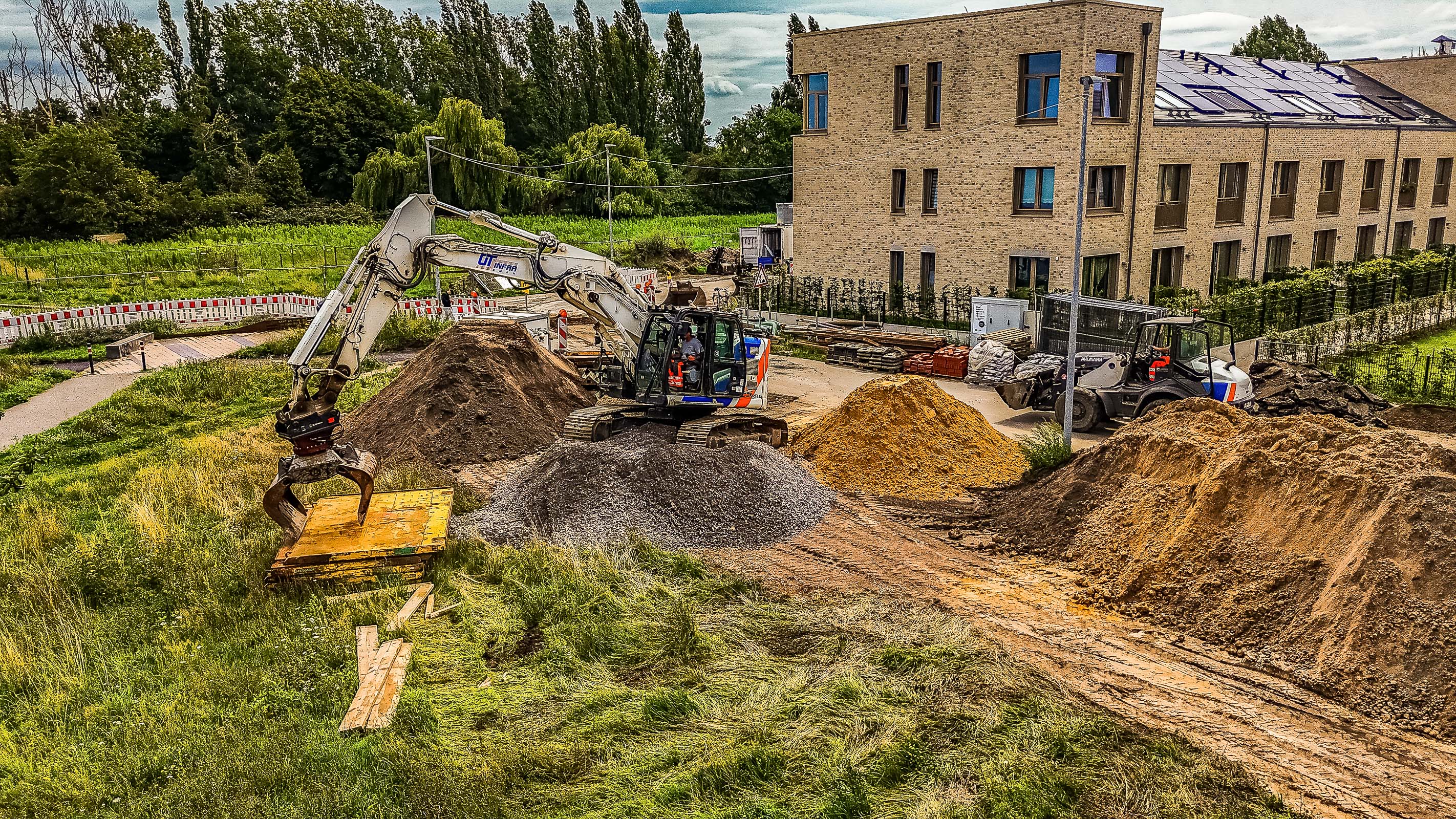 ✅ Gelände wiederhergestellt: Der Arbeitsraum wurde lagenweise verfüllt, nach Norm verdichtet und die Oberflächenbefestigung finalisiert.