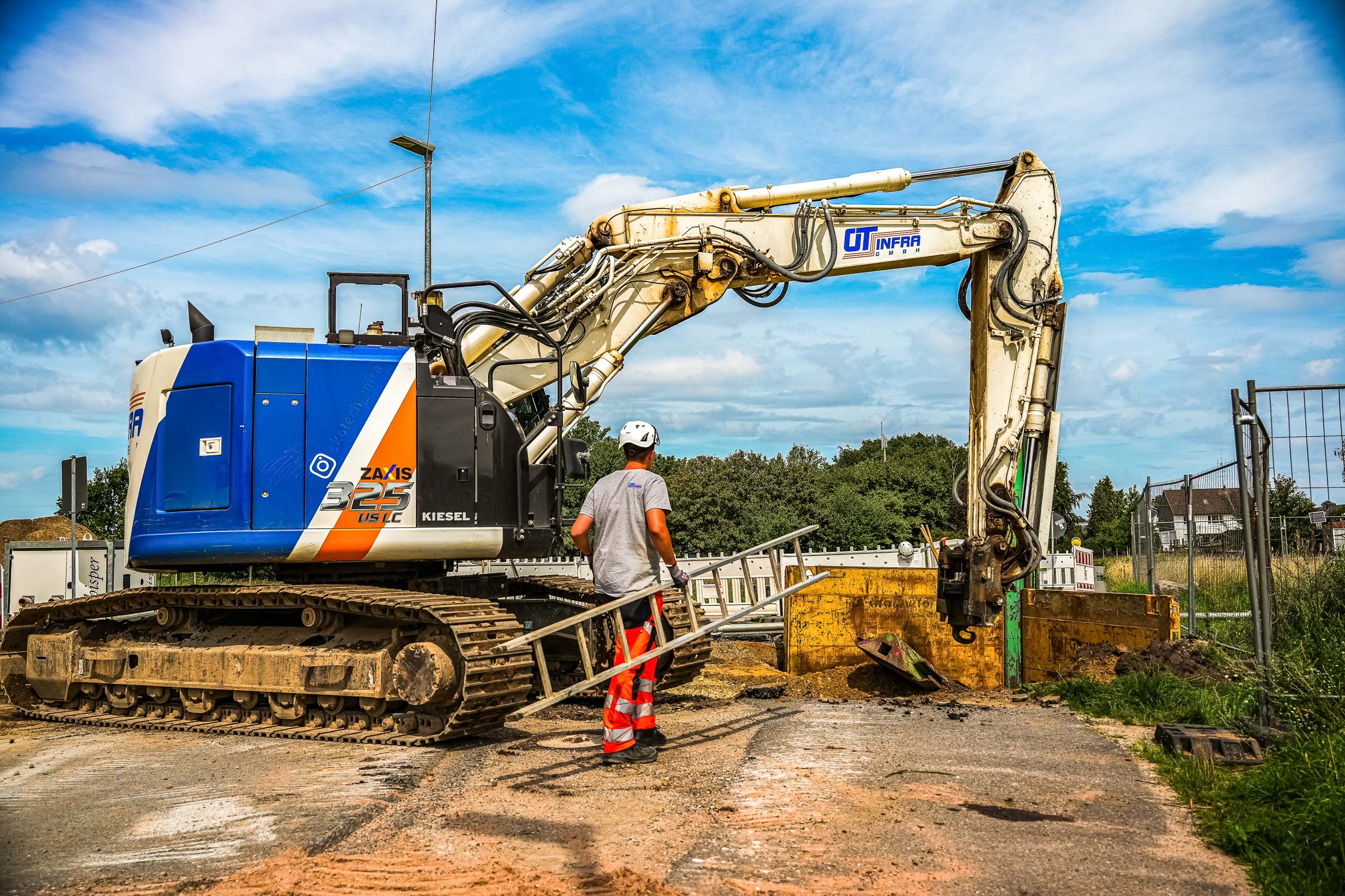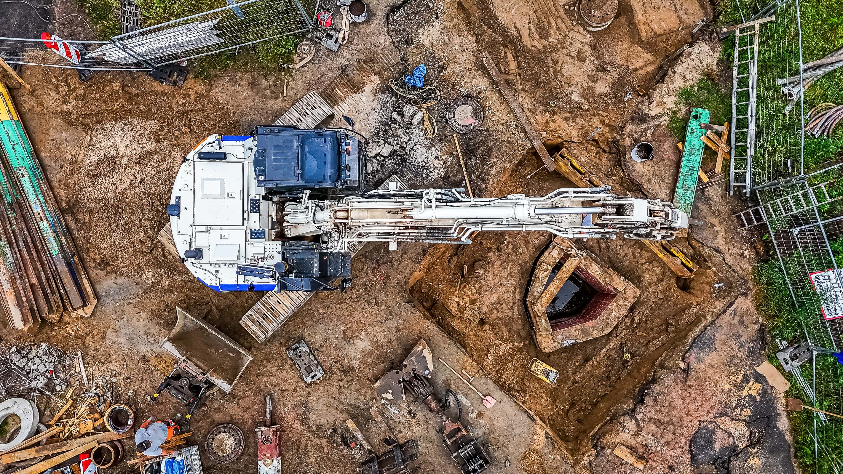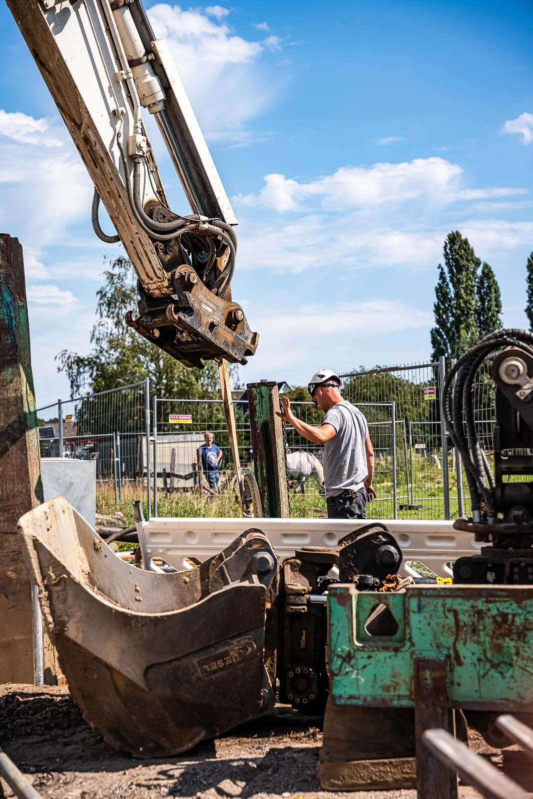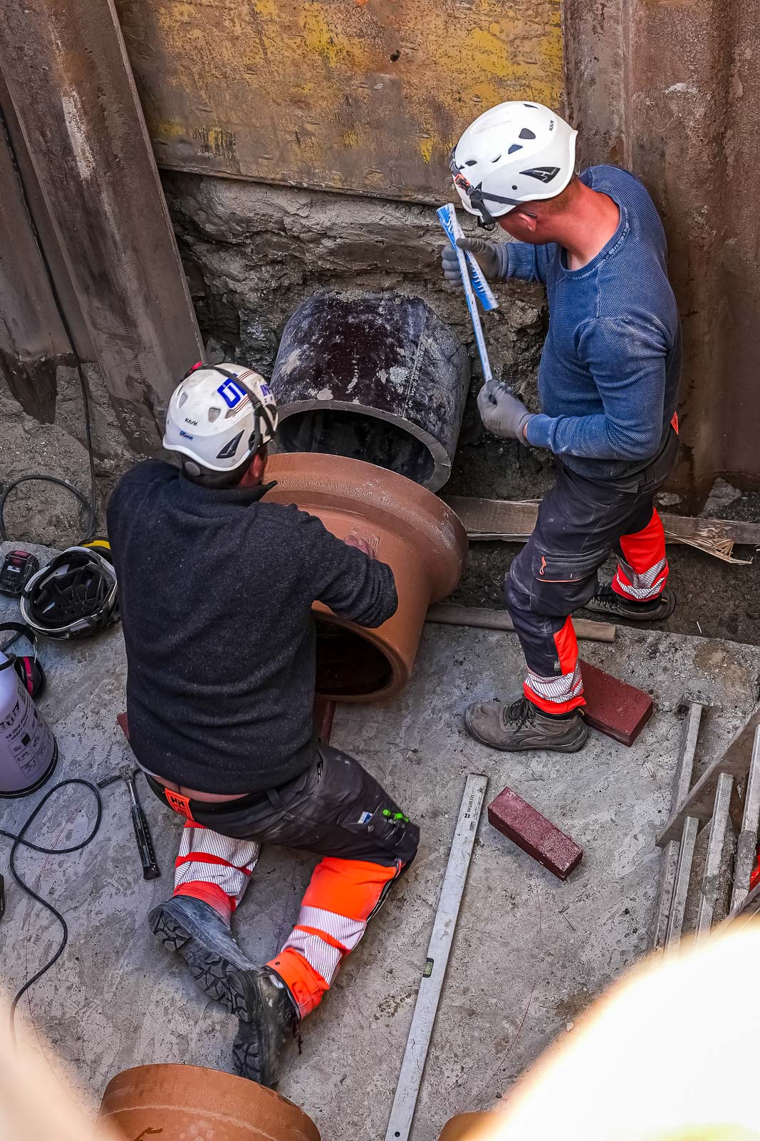 ✅ Maßarbeit beendet: Das Schachtunterteil wurde präzise auf Solltiefe gesetzt und der Kanaldielen-Verbau erfolgreich zurückgebaut.